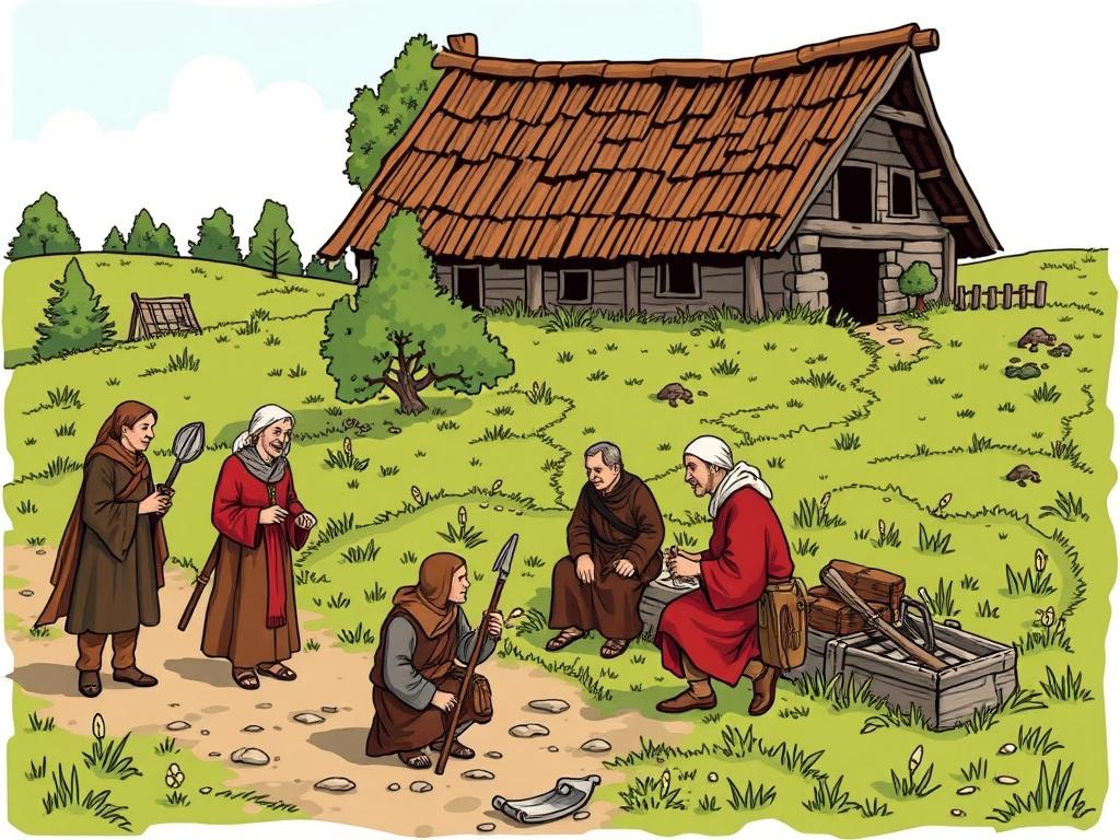 Хозяйство велось по кругу: поля отдавали зерно, огород давал овощи и травы, а дворовые животные обеспечивали молоко, мясо и шерсть. Рожь и пшеница, ячмень и овёс — злаковые, которые определяли меню и экономику. Религия дня требовала уважения к земле и водам, но практически каждый день был занят работой: пахота, сеяние, сбор урожая, охота и ловля рыбы. Мужчины чаще занимались земледелием и охотой, женщины — прядение, ткачество, приправляли пищу, занимались уходом за домом и уходом за детьми. Но роли были гибкими — это не жесткие стереотипы, а практическая реальность того времени.