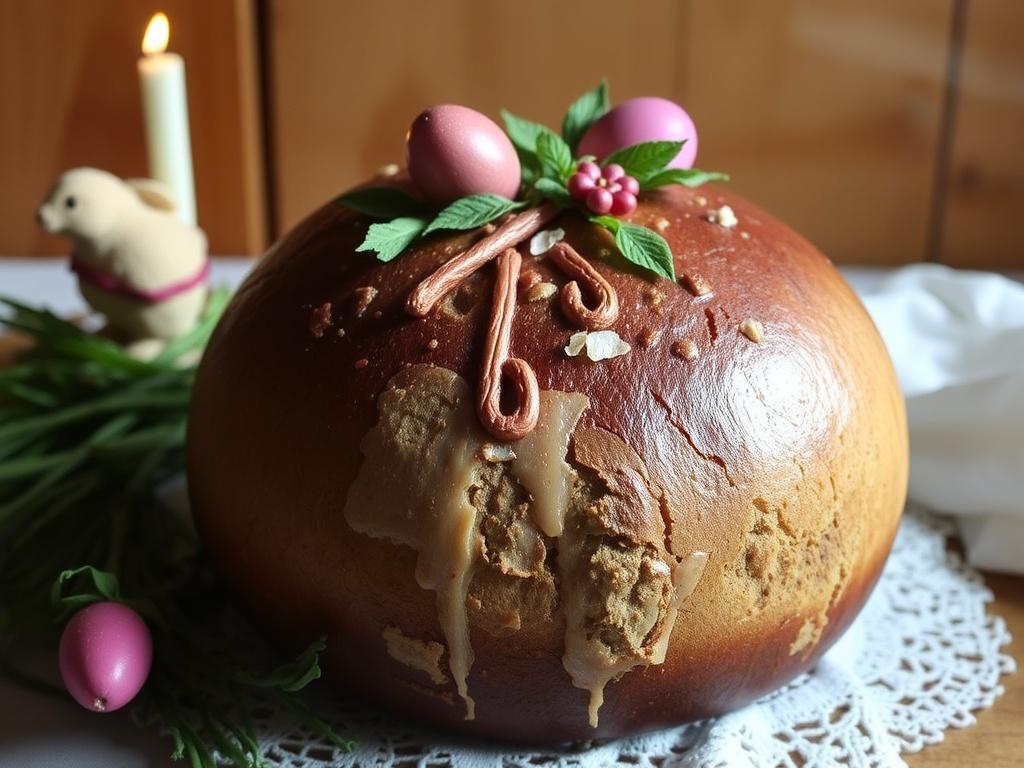 Кулич, как хлеб праздника, несет символику тела и крови: выпечка поднимается, становится выше, а значит приближает нас к идее возрождения. Тесто, обогащенное яйцами, молоком и сливочным маслом, превращается в мягкий, ароматный символ единства и тепла домашнего очага. Когда мы запекаем кулич, в доме появляется особый запах дрожжей и утреннего солнца, и эта атмосфера становится главной частью праздника. Праздничный стол без кулича и пасхи ощущается неполным, потому что они связывают повседневность с чем-то большим и светлым.