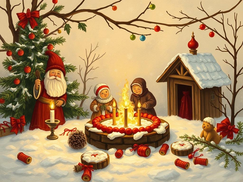 Образ вечернего стола богат символами. Кутья — одно из самых ярких и узнаваемых блюд, его строгий ритуал начинается с подготовки крупы, меда, орехов и изюма. Мешанка сладких вкусов напоминает о прошлом урожае и о щедрости природы, а постные блюда накануне Рождества напоминают верующим о дисциплине и духовном очищении. Массовое явление колядок — когда люди выходят на улицу, поют, танцуют и раздают маленькие подарки — превращает обычный вечер в живое театральное действо, где каждый участник становится частью большого праздника.